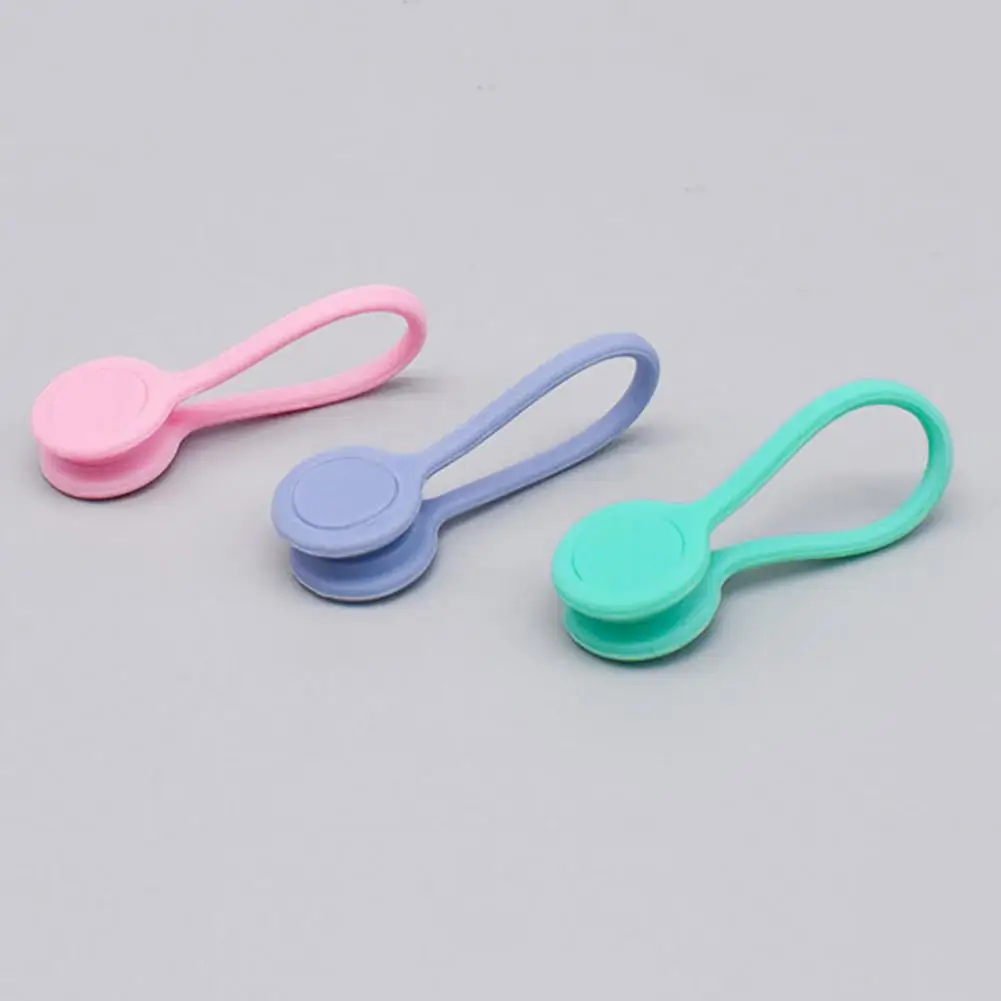 Rubber Cable Holder Magnetic Cord Clips Adjustable Elastic Magnet Buckle Cable Winder Rubber Cable Organizer Management Belt