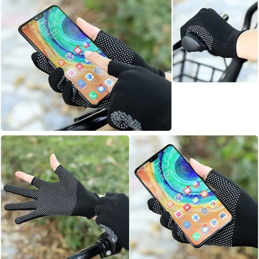 Sports/Biking Stretch Driving Gloves Open Two Finger Anti-Slip Sunscreen Gloves Wear Resistant Cycling Mittens Men/Women